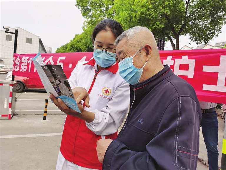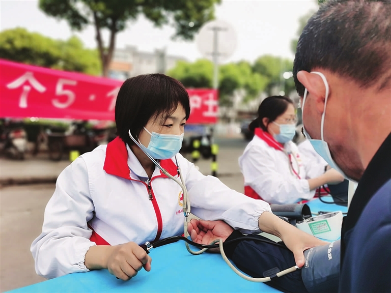 “阿姨,你的血压是正常的,平时注意饮食,适当进行锻炼。”5月7日上午,羊尖镇卫生院的护理志愿者开展健康科普宣传活动。活动现场,志愿者们为群众免费测血压、血糖,正确指导用药,发放各种疾病健康宣教资料等,同时普及新冠疫情防控知识,指导正确佩戴口罩、七步洗手法,介绍新冠疫苗接种知识,倡导大家积极响应国家号召,自觉接种疫苗,增强自身免疫力,用专业的知识来指导群众提升健康素养。