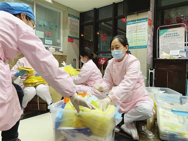 起雾面屏下坚毅的眼神,楼道内颤抖却依然攀爬的双腿,从寒风瑟瑟到烈日炎炎,从风雪中紧裹的羽绒服到防护服中汗水浸湿的短袖……只要群众需要,全体护理人员一直都在。
