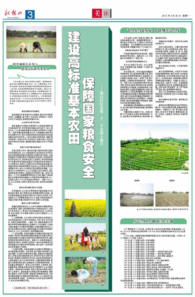 今年全国6·25土地日宣传的主题是“建设高标准基本农田保障国家粮食安全”。这一主题的提出,不仅再次证明了党和政府坚持最严格的耕地保护制度的决心和力度,而且在保障国家粮食安全高度上,提出了全面提升基本农田建设水平的总要求。